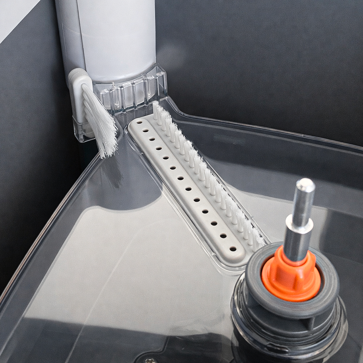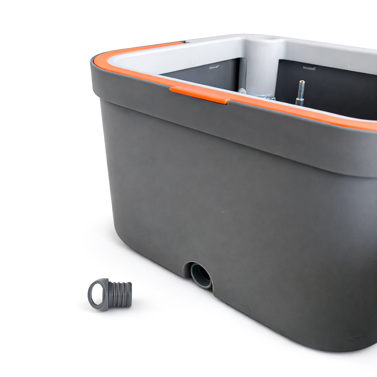 Gracias a su sistema de separación, el agua sucia fluye hacia el balde exterior, mientras el agua limpia permanece separada.
