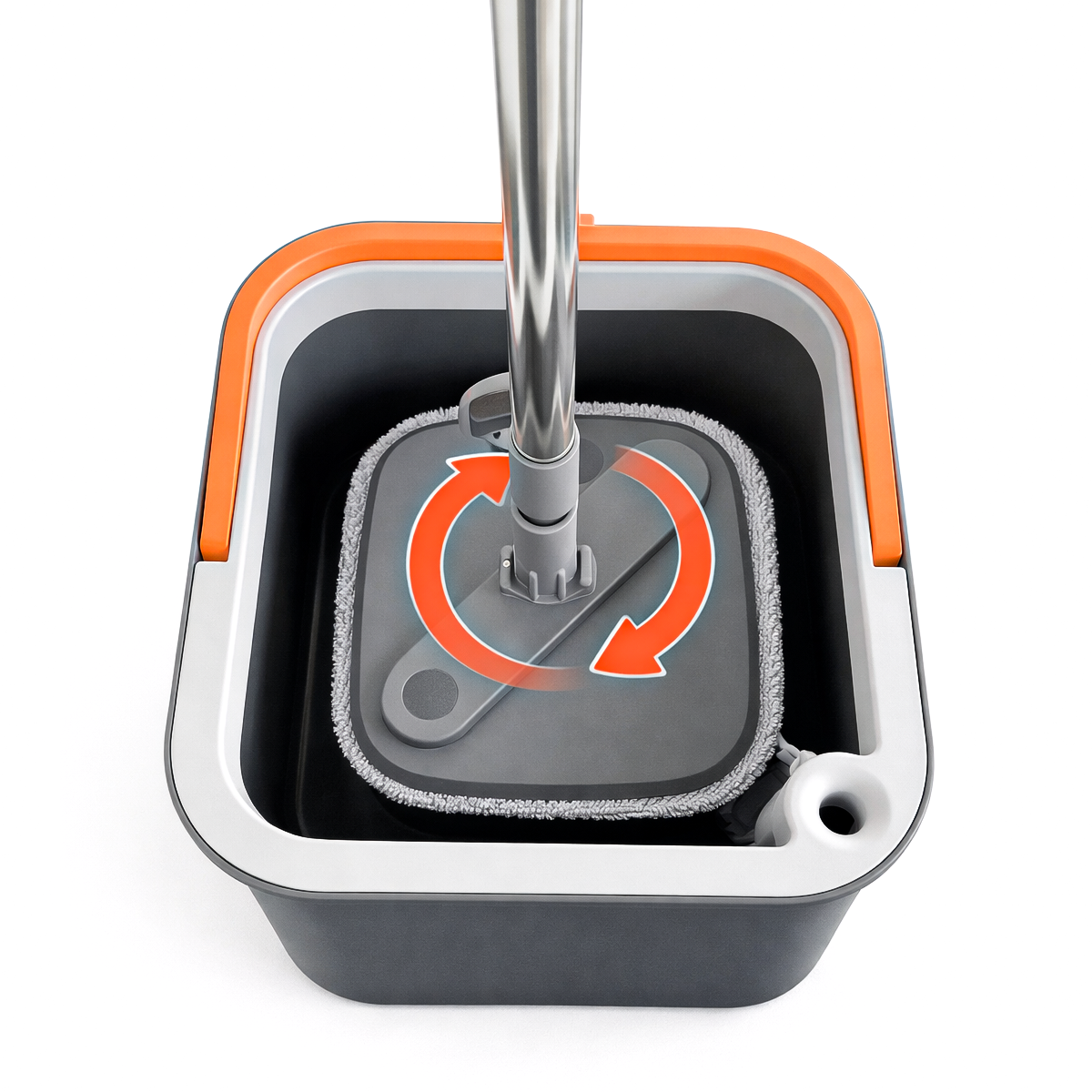 Este trapeador cuenta con un sistema de limpieza rotatorio que permite lavar y secar el mop dentro del balde de manera rápida y sencilla. Solo debes mover el mango hacia arriba y hacia abajo: